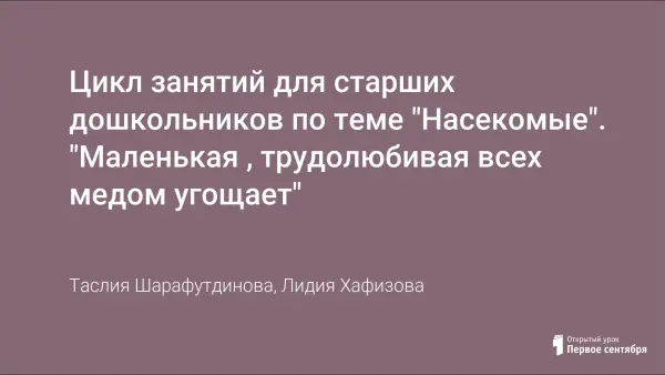 Цикл занятий для старших дошкольников по теме "Насекомые". "Маленькая , трудолюбивая всех медом угощает"