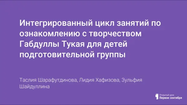 Интегрированный цикл занятий по ознакомлению с творчеством Габдуллы Тукая для детей подготовительной группы