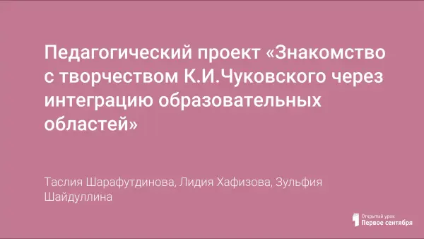 Педагогический проект «Знакомство с творчеством К.И.Чуковского через интеграцию образовательных областей»