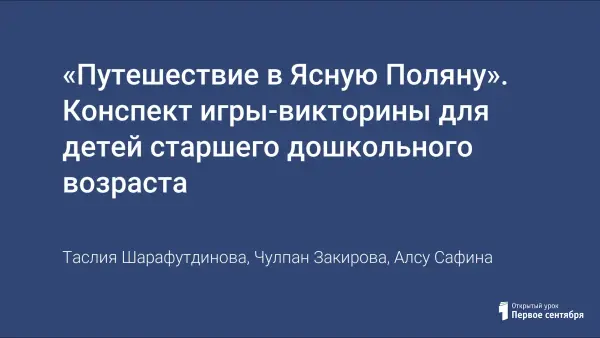 «Путешествие в Ясную Поляну». Конспект игры-викторины для детей старшего дошкольного возраста