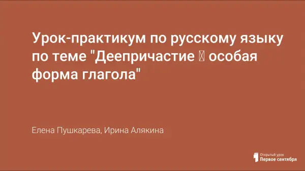 Урок-практикум по русскому языку по теме "Деепричастие ‒ особая форма глагола"