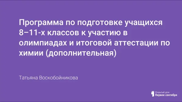 Программа предназначена для учащихся 8–11-х классов с повышенным интересом к предмету и высоким уровнем интеллекта. Данная программа позволяет создать условия для развития индивидуальных способностей учащихся, обеспечить углубленное изучение химии.