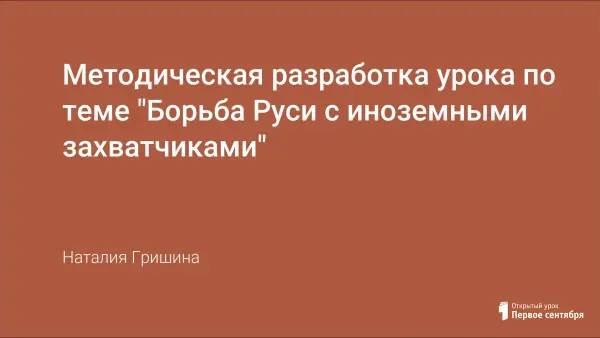 В рамках изучения истории во втором концентре представлена методическая разработка урока по теме "Борьба Руси с иноземными захватчиками" с мультимедиапрезентацией. Использованы формы и методы, которые позволяют достичь повышения эффективности и качества учебного процесса. В разработке даны методические рекомендации, презентация, дидактические материалы и документы с заданиями.