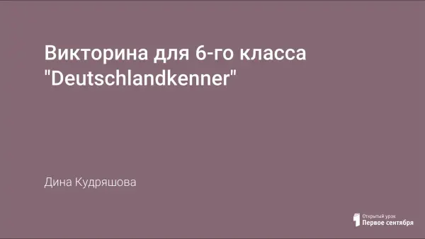 Урок проводится в 6-м классе в качестве обобщающего после изучения темы "Коллективные поездки по Германии". Учащиеся работают в группах, но можно также устроить и индивидуальное первенство. На уроке используется презентация, выполненная в Power Point 2007.