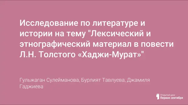 Исследование по литературе и истории на тему "Лексический и этнографический материал в повести Л.Н. Толстого «Хаджи-Мурат»"