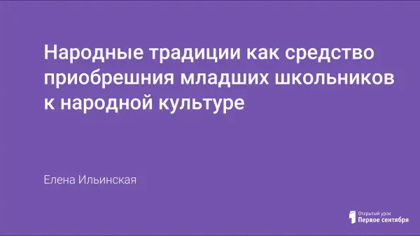 В современных воспитательных учреждениях происходит знакомство с народной культурой. Начинается оно еще в дошкольном возрасте. В младшем школьном возрасте детей продолжают знакомить с традициями и праздниками русского народа, но ребята уже сами могут выделить определённый смысл из произведений русского народного творчества. Поэтому, знакомя детей с традициями русского народа, мы тем самым приобщаем их к нравственным общечеловеческим ценностям.