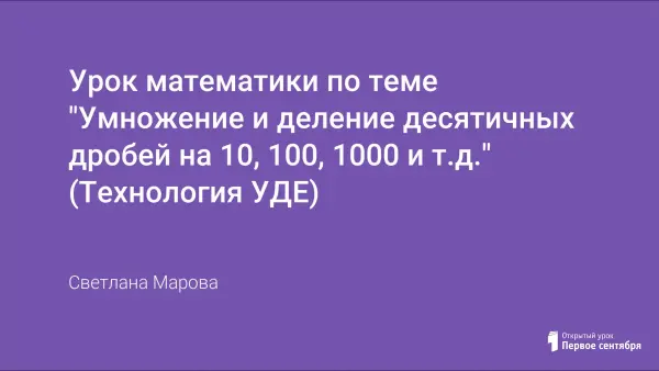 Урок построен на использовании технологии укрупнения дидактических единиц (УДЕ). Главной особенностью ее является перестройка традиционной дидактической структуры материала внутри предмета. На данном уроке одновременно изучались взаимно обратные действия: умножение и деление десятичной дроби на разрядную единицу. В традиционном изложении это материал двух уроков. Интенсификация обучения осуществляется на основе использования опорных схем.