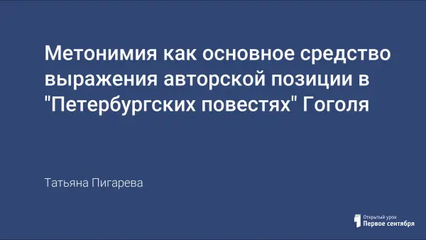 В «Петербургских повестях» Гоголь берет слова с конкретным значением и употребляет их в переносном значении, используя метонимический перенос. Мы по-новому видим мир человека в XIX веке, образы Петербурга, России. В работе подробно рассматривается метонимию в «Петербургских повестях» и делаются попытки найти цель ее применения.