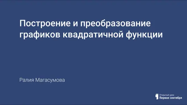 Урок проводится в 9-м классе после изучения темы «Квадратичная функция и её график». На уроке ученики решают основную задачу экспериментальным путем получить алгоритмы построения графиков функций видов y=f(x+t), y=f(x)+m,y=f(x+t)+m, если известен график функции y=f(x).