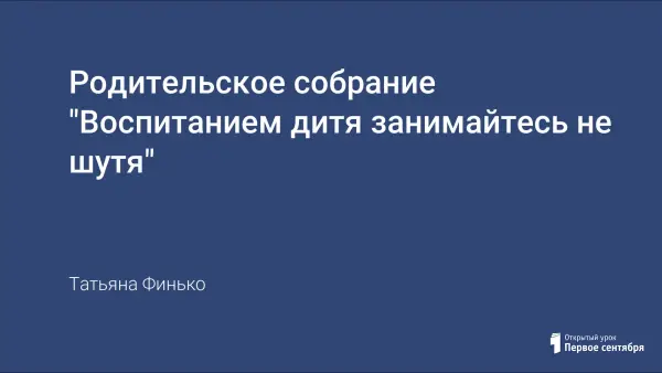 И учителя, и родители связаны единой целью: обучить и воспитать детей. Достичь каких-либо успехов в этом возможно при взаимопонимании между семьёй и школой. Но зачастую родители самоустраняются, считая воспитание детей обязанностью только школы. Поэтому классному руководителю необходимо разъяснить родителям, насколько важно воспитание детей в семье. Одной из главных форм работы с родителями является родительское собрание.