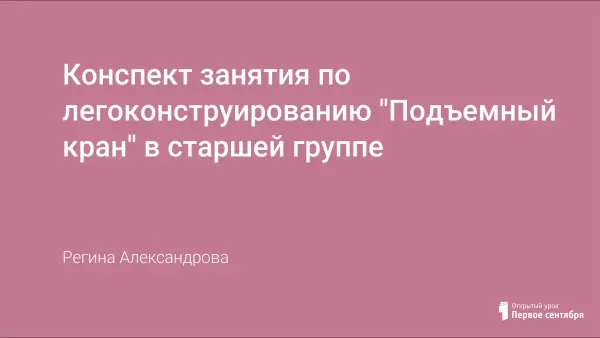 Цель занятия: развитие способности детей к наглядному моделированию через конструктор "LEGO".