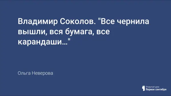 Владимир Соколов. "Все чернила вышли, вся бумага, все карандаши…"