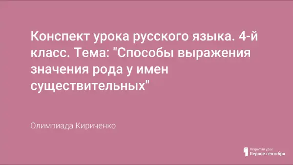 На изучение грамматического значения рода отводится 7 часов. В развивающем обучении они интересны возможностью глубокого исследования этой категории, нетрадиционным подходом в преподавании, прочным овладением навыком определения рода за короткий срок.