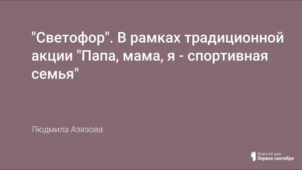 Праздник "Светофор" был проведен в рамках традиционной акции "Папа, мама, я - спортивная семья!". Цель мероприятия: развитие интереса к спорту, привлечение родителей к усилению взаимосвязи с детьми, упрочению семейных уз, общению учителей с родителями ученика во благо ребенку.