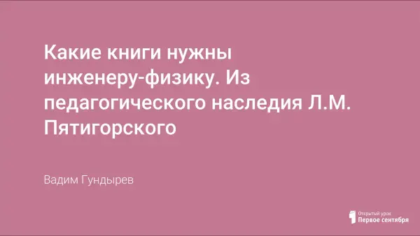 Рассмотрена история становления научных интересов физика-теоретика Л.М. Пятигорского. Приведены выдержки из составленных им рекомендаций по формированию домашней библиотеки. Показано, что общекультурное развитие необходимо «физикам» так же, как и «гуманитариям».