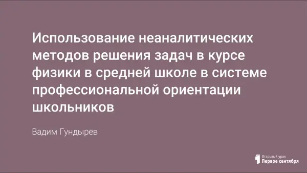Рассмотрены методы решения задач, применяемые автором при работе со школьниками профильных классов. Рассмотрены примеры по применению пяти методов: метода правдоподобных рассуждений, графического метода, метода векторных диаграмм, методов симметрии и размерности.