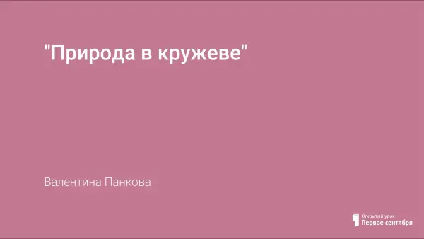 Авторская программа «Природа в кружеве» предназначена для системы дополнительного образования детей и рассчитана на 3 года обучения. Направление: художественно-эстетическое, изучение плетения кружев на коклюшках. Природа - главный источник творчества для создания как традиционного представления кружев в виде украшения одежды и интерьера, так и для создания картин, панно на тему природы. Через красоту кружев дети учатся бережно относиться к живой природе и сохранять культурные традиции.