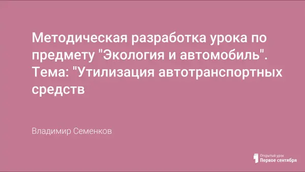 Проблема загрязнения окружающей среды чрезвычайно актуальна. Целью данного урока является ознакомление с видами, этапами утилизации транспортных средств и проблемой утилизации транспортных отходов.