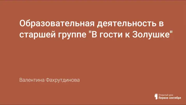 Мероприятие проводится с детьми старшей группы как авторский день, роль Золушки исполняет мама воспитанника. На мероприятие приглашены педагоги ДОУ и родители. Итог: восхищение детей и положительные отзывы приглашенных.