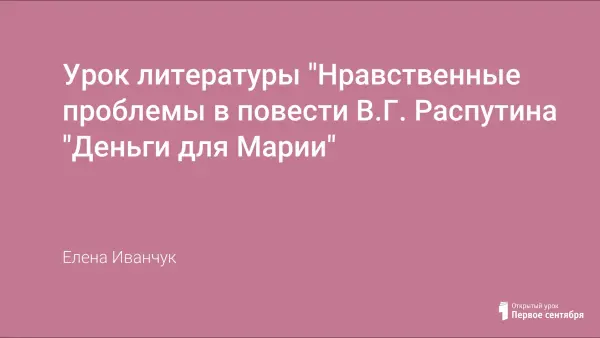 Целью урока является актуализация личного опыт учащихся, формирование лучших их нравственных качеств. Раскрытие темы поможет дать краткий обзор творчества В.Распутина, обратить внимание на проблемы, которые ставит писатель в повести.