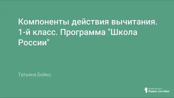Урок открытия нового знания знакомит с названиями компонентов при вычитании; способствует развитию математической речи, умению читать, составлять и записывать выражения, используя термины «уменьшаемое, вычитаемое, разность», умению выполнять устно и письменно арифметические действия с числами и числовыми выражениями. На уроке воспитывается культура поведения при фронтальной, групповой и самостоятельной работе.