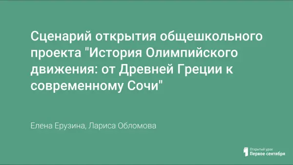 Сценарий открытия общешкольного проекта "История Олимпийского движения: от Древней Греции к современному Сочи"