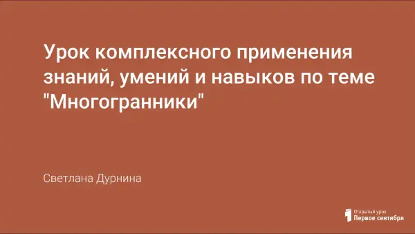 Урок комплексного применения знаний, умений и навыков по теме "Многогранники" систематизирует и обобщает знания. На уроке необходимо показать знание теоретического материала, а также умение применять полученные знания на практике.