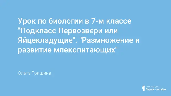 Урок биологии в 7-м классе содержит материал, который можно использовать как дополнение к уроку биологии по теме "Класс Млекопитающие", в рамках УМК по программе Пасечника, так и в качестве проверки знаний при изучении темы «Особенности размножения животных».