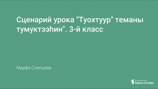Урок родного языка (якутского языка) в 3–4-м классе по теме «Туохтуур» (Глагол). Урок проводится в форме игры «Звездный час». На занятии в ходе игры учащиеся повторяют полученные знания о глаголах якутского языка, обобщают и обогащают свои знания, работая над пословицами и фразеологизмами.