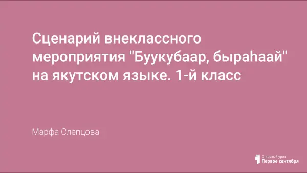Представлен сценарий внеклассного мероприятия «Буукубаар, быраһаай» на якутском языке для проведения праздника «Прощание с букварем» в 1-м классе.