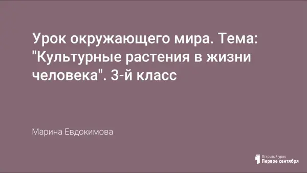 Урок окружающего мира проводится в форме игры "Что? Где? Когда?". Фрагмент урока готовит и проводит учитель ИЗО. Материал урока знакомит учащихся с тем, что культурные растения имеют большое значение для жизни и здоровья человека, знакомит со страничкой истории родного города.