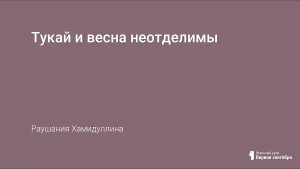Мероприятие проводится в форме литературно-музыкальной композиции жизни и творчестве Габдуллы Тукая с применением мультимедийного проектора, электронного пособия по творчеству Г. Тукая, викторины. Презентация может быть применена как на уроке, так и на других учебных занятиях в любом учебном заведении.
