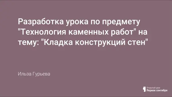 Урок помогает актуализировать знания учащихся, углубить полученные на предыдущих уроках знания, обобщить знания по технологии кладки стен, систематизировать прикладные и фундаментальные знания.