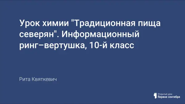 Разработка урока «Традиционная пища северян» – попытка систематизации учебного материала в курсе химии с учетом национально-регионального компонента для школ Крайнего Севера. Органические вещества пищи: белки, жиры, углеводы, витамины – рассматриваются в контексте самобытности и культуры народа, специфики среды обитания, окружающего мира, обычаев и традиций этноса.