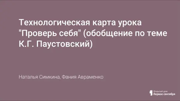 Технологическая карта урока "Проверь себя" (обобщение по теме К.Г. Паустовский)