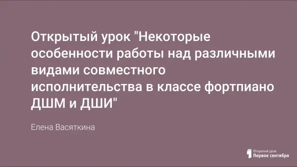 Урок посвящён изучению особенностей и способам работы над разными видами совместного музицирования. Участие в ансамбле, приобретение опыта вокального и инструментального аккомпанемента, умение исполнять солирующую партию в фортепианных концертах даёт многое для подготовки учащихся к активному участию в музыкальной жизни.