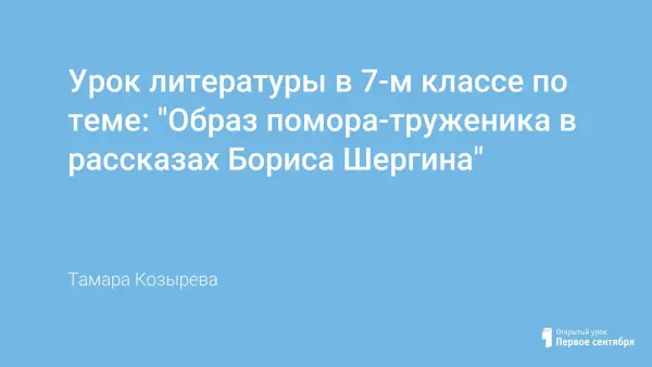 Русский Север богат своими древними художественными традициями. В произведениях Б.В. Шергина мы видим спокойный, живой и самостоятельный образ помора, его характер. Вот почему при имени Шергина первая мысль не только о нём самом, а прежде всего о Севере, северном народе. И книгами, и примером своей жизни Шергин даёт нам урок памяти и любви.