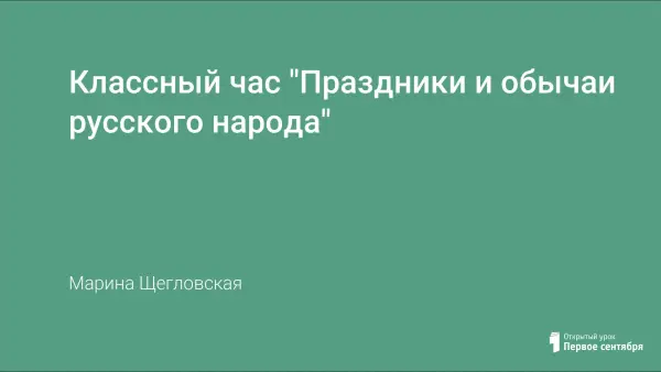 Классный час для 7—8-х классов направлен на воспитание уважения к традициям и обычаям православных народов, влияющим на культуру человеческого бытия. Знакомство с народными праздниками, такими как "Праздник урожая", "Новый год", "Святки", "Крещение", "Масленица", "Пасха", "Воздвижение" предлагается проводить в виде групповой пресс-конференции или игры.