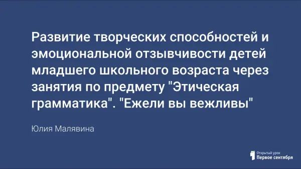 Для младшего школьника характерно внимание к нравственной стороне поступка, желание дать ему моральную оценку, стремление быть хорошим в оценке окружающих. Автор статьи ориентирует детей на творческий процесс познания этических норм воспитанного человека путем диалога, игры, наглядности, сказкотерапии, анализа, обыгрывания ситуаций и театрализации.