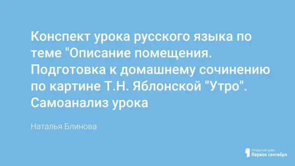 Данный урок является вторым в теме «Описание помещения» (на первом занятии обучающиеся рассматривали особенности описания помещения). На этом уроке совершенствуются ЗУН учащихся по сбору и систематизации материала к сочинению, закрепляются навыки создания связного текста, отрабатываются умения по созданию сочинения по типу речи «описание».