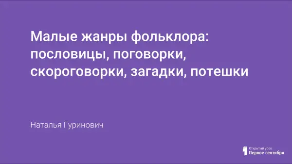 Представленный конспект урока и презентация предназначены для проведения урока по литературному чтению в 1-м классе. На уроке выявляется прежний читательский опыт (знание малых жанров фольклора); формируются понятия о малых жанрах фольклора; идёт воспитание на традициях русской национальной культуры через краеведческий материал.