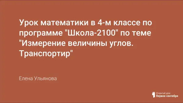 Урок разработан с учетом индивидуальных особенностей учащихся начальной школы, с использованием здоровьесберегающих технологий. Занятие продолжает знакомство с транспортиром, формирование умения измерять углы с помощью транспортира, строить углы по заданному значению их величины, складывать и вычитать величины углов.