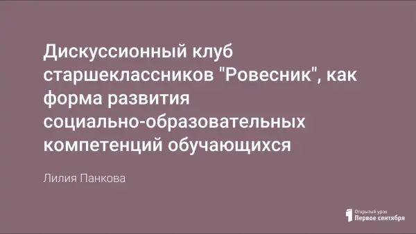 В ситуации динамичного социально-экономического развития страны, в анализе запросов общества и обучающихся новые потребности в результатах образования можно реализовать через идею развития компетенций обучающихся не только в учебном процессе на уроках, но и во внеклассной работе с обучающимися. Клубная форма даёт большие возможности для формирования и развития социально-образовательных компетенций.