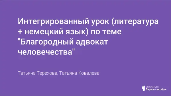 Интегрированный урок (литература + немецкий язык) по теме "Благородный адвокат человечества"