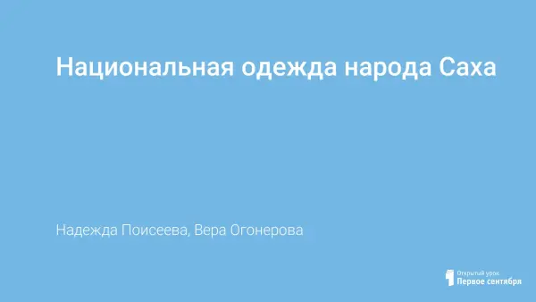 Традиционная одежда является частью этнической материальной культуры якутов и незримыми нитями тесно связана с их образом жизни, окружающей средой и религиозными воззрениями. Цель урока – сформировать у учащихся целостное представление о национальной одежде народа Саха.