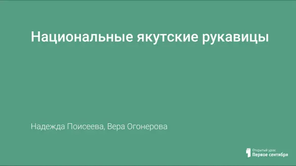 На уроке учащиеся знакомятся с якутской национальной одеждой, с искусством народа Саха, с видами рукавиц. Развивающая цель: формирование навыков по моделированию и конструированию видов рукавиц и перчаток в национальном стиле. Воспитательная цель: привитие уважения и любви к творчеству своего народа, воспитание чувств интернационализма.