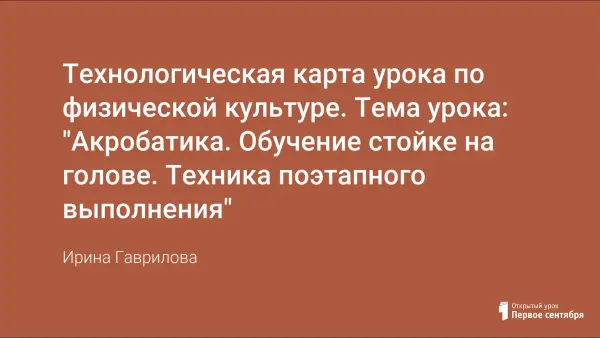 Цели и задачи урока: создать представление о правильной технике; обучение и совершенствование техники выполнения стойки на голове; содействовать воспитанию сознательной дисциплины при выполнении заданий.