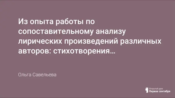 Сопоставительный анализ лирических произведений различных авторов - сложнейшая тема для учащихся средней школы. У ребят, когда они получают задание, возникает неуверенность в способности научиться этому виду работы. Но это интереснейшая работа, она существенно развивает мышление, способность анализировать, сопоставлять.
