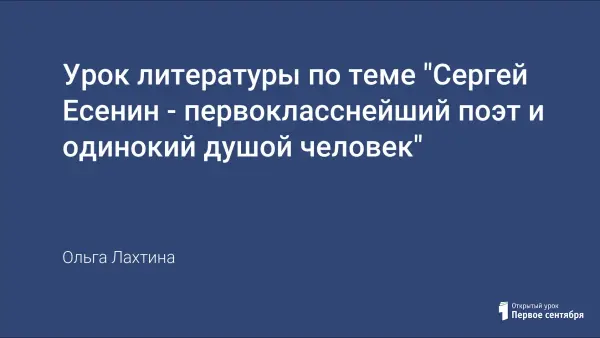 В данной статье представлен ход урока, который позволят ощутить атмосферу эпохи первых лет революции, почувствовать дух времени в описании быта, уклада, людского окружения Есенина, увидеть, каким было его бытие – «первокласснейшего поэта» и одинокого душой человека.