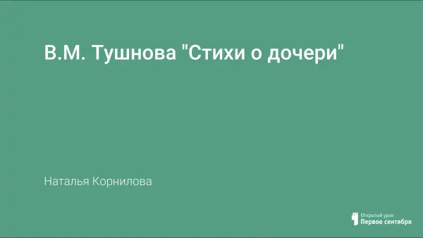 Данный урок проводился в четвертом классе по учебнику М.В. Головановой, В.Г. Горецкого, Л.Ф. Климановой во втором полугодии. В системе уроков чтения эти произведения В.Тушновой представлены в поэтической тетради «Мне вспомнились детства далекие годы…» наряду с другими известными поэтами: В.Я. Брюсовым, С.А. Есениным, Н.С. Гумилевым, М.И. Цветаевой, А.Т. Твардовским, Н.М. Рубцовым.